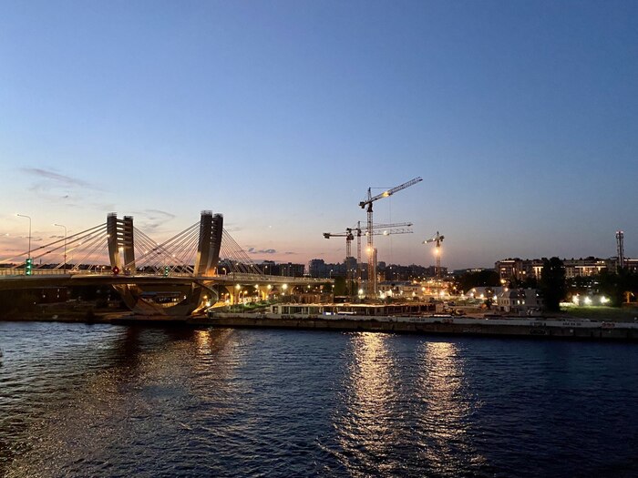 Вантовый мост Бетанкура соединяющий острова Декабристов и Петровский и пересекающий сразу две реки Малую Неву и Ждановку