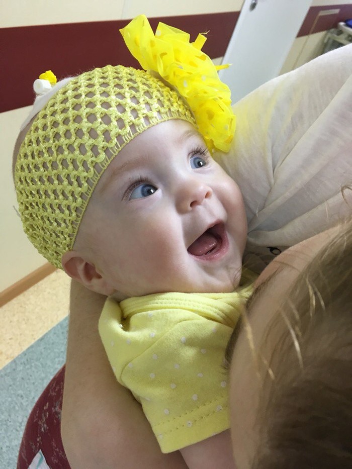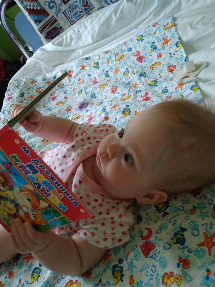 Позже сказали, что для такого маленького человечка это было слишком большое инородное тело. Организм стал его отторгать и появилась сильная инфекция. Пришлось срочно делать еще одну операцию, доставать шунт и ставить наружный дренаж. Выходные Маша провела в реанимации, а на следующей неделе их с Яной снова перевели в одну палату. Наружный дренаж стоял 2 недели. Слава Богу, инфекцию вылечили. Врачи наблюдали за тем, как растет у Маши голова и смотрели, нужно ли ставить новый шунт. После того, как дренаж убрали, наблюдение шло еще неделю. Нас обнадежили — всё функционирует без шунта, можно ехать домой.