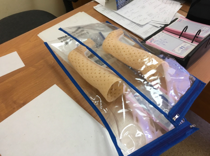 Для нас же еще одним из главных преимуществ было бы отсутствие необходимости ехать снимать мерки для хороших ортезов в Москву, возвращаться, ждать изготовления и ехать за ортезами обратно. Но, к сожалению, оказалось в Кирове никто из ортопедов с этим материалом не работал.