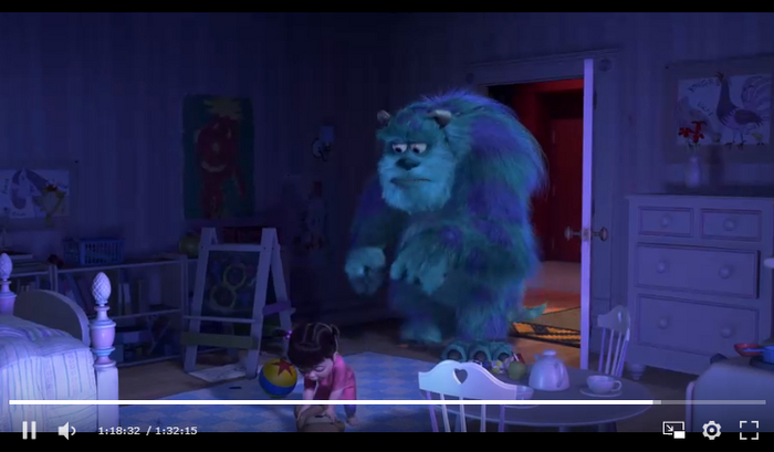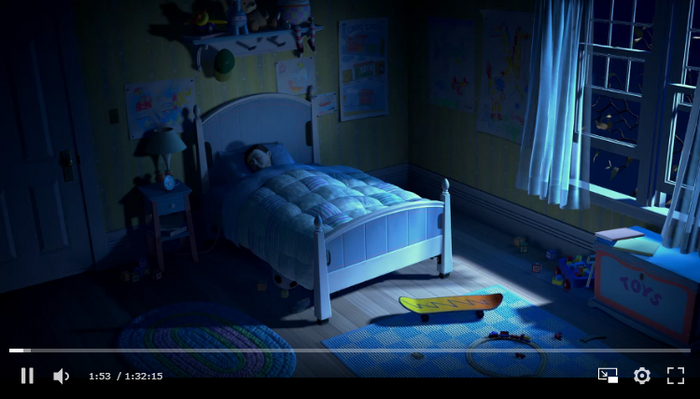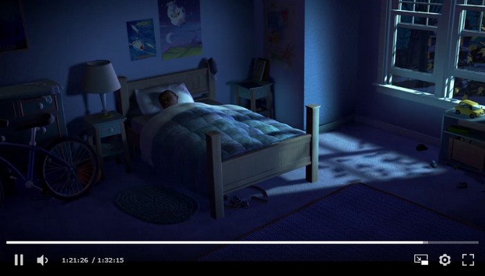 Учитывая, что спрайты в игре были сделаны на основе оригинального мультика ("История игрушек", тоже Pixar), я запускаю его и начинаю искать мяч. В начале его нигде не видно и я вспоминаю, что в сцене, где Базз показывает, что он якобы на самом деле умеет летать, он вроде бы отпрыгивал от мяча. Перематываю на эту сцену и нахожу заветный мячик)