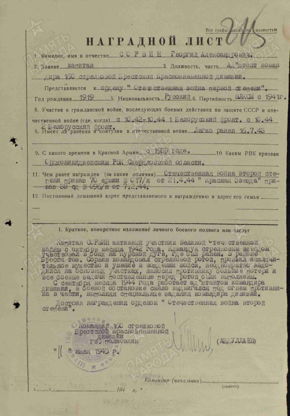 160 стрелковая дивизия Западного фронта, 2 Белорусского фронта
