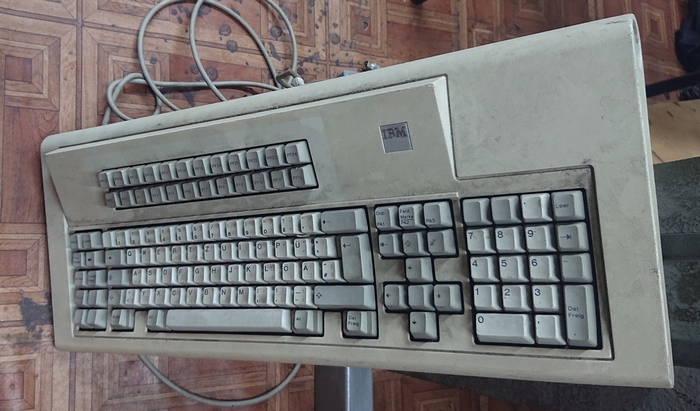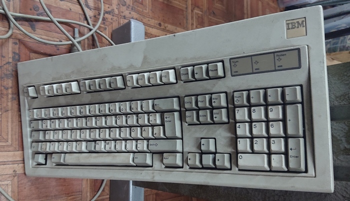 IBM Model M (точно за модель не знаю, но похожа). Немецкая, две накладки утеряны, корпус тоже слегка того, для любителей тактильных ощущений.