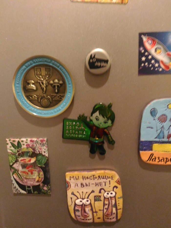 Приятные мелочи, магнитики по традиции заняли свое место на холодильнике. Жена призналась, что 3 года мечтала о маленькой шапочке для нашего человечка. Она ему очень подошла =)