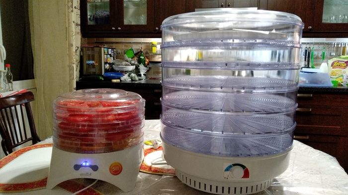 В какой то момент духовка и старая сушилка перестали справляться с таким напором массово зреющих томатов и мы купили Нормальную сушилку!