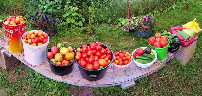 Было заготовлено достаточное количество хреновины, помидоров в собственном соку, сока томатного и параллельно много сушилось и вялилось.