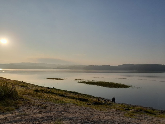 Стоянка на водохранилище, которую мы очень долго искали, а нашедшая нам, сначала, не понравилась, но потом я ей проникся. Каждый день купался утром и вечером (это так шикарно, вы бы знали). Некоторые озера были цветущими, а некоторые… но об этом позже). Снова был суп на ужин, не борщ, конечно, но всё же.