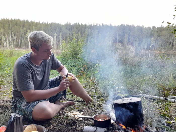 Прекрасно просыпаться утром, не с мыслью, что нужно разжигать костёр, а от того, что будит Лиза или Юля и зовут пить кофе, это стало небольшим ритуалом. Мы очень долго думали, каждый день, что у нас будет на ужин и на завтрак, как показала практика, ужин и завтрак были одинаковыми, так как за вечер не успевали съесть приготовленное.