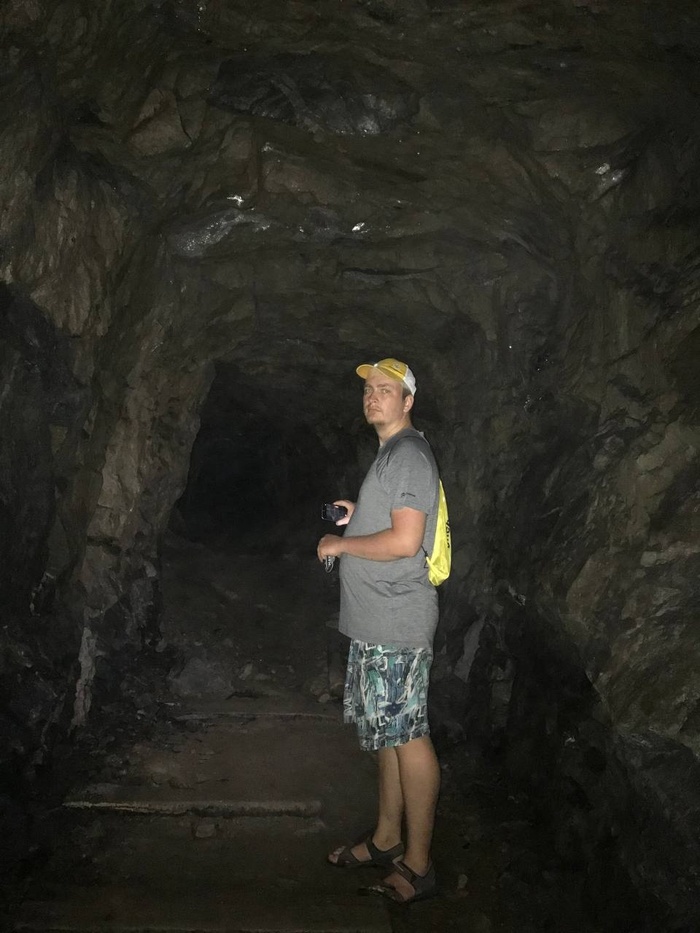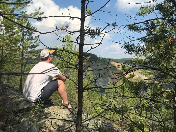 Дальше был первый дождь, постановочное видео с зонтиком, черви на ветке и Слюдорудник, захватывающее место, где когда-то работали люди, оно мне понравилось намного больше, чем кунгурская пещера, там было холодно и темно, чувствовал себя каким-то исследователем, которого ждут сокровища (коллекция камней и облепиха на склоне), удалось отдохнуть от жары, насладиться видом вокруг (наслаждался я каждую секунду, ведь с каждым днём вид был всё более завораживающим). Очень вкусные пирожки с картошкой, ещё горячие, йогурт для Юли и квас для нас всех, почти как домашний.