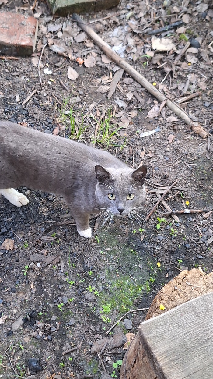 У кота очень добрый взгляд и красивые лапки. Дал ему сосиску и кусочек мяса.