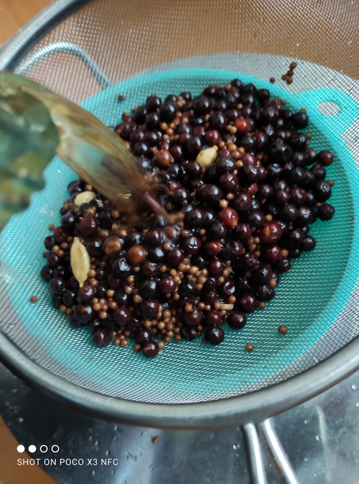 Заливаю в куб, при этом пропускаю через сито крупные части
