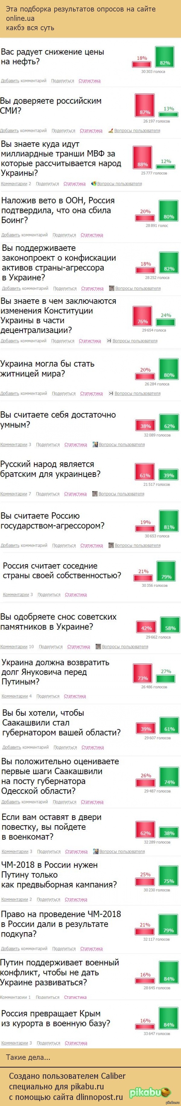 1079 caliber Результаты опросов Украинских граждан 10 лет назад Длиннопост Показать полностью 1 [моё] Украина Россия Политика Владимир Путин Петр Порошенко Статистика Хохлосрач Длиннопост