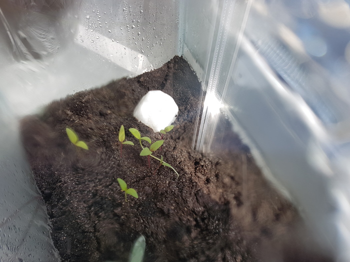 Повторюсь, что специально, заранее и/или во время эксперимента, никакой живности запущенно не было. Все, что вы видите (плодотворный результат эволюции) по всей видимости, уже находилось в земле во время "отбора проб".