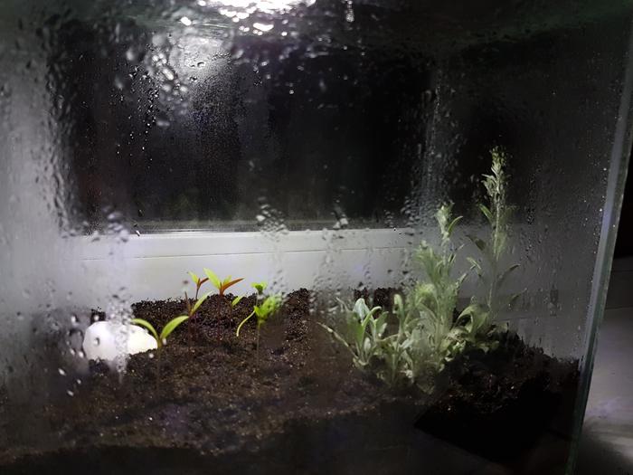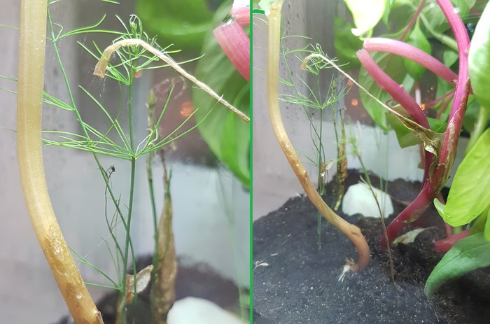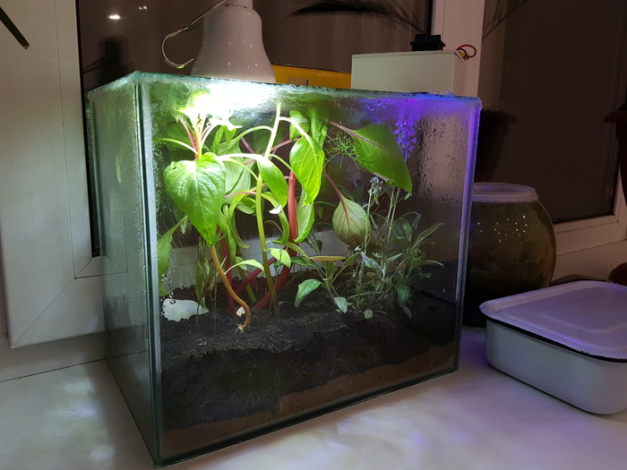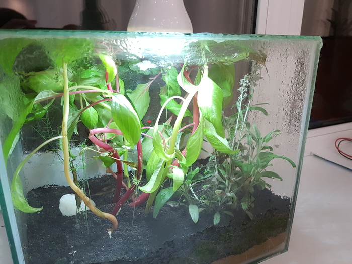 Общая продолжительность эксперимента - 38 дней или ~900 часов с момента закрытия верхней части аквариума. Ситуация заметно ухудшилась. Активный рост растений сильно замедлился, а последние дни активной жизни были замечены в течении 2-3 дней, после 4го поста. Наблюдаемые ранее "мошки" прожили всего дней 5-6.