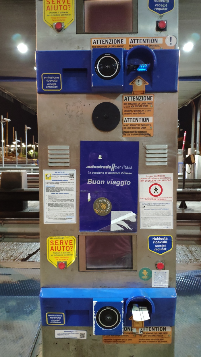 Чтобы добраться из Рима в Неаполь использовали платные автодороги. Для оплаты используются вот такие автоматические терминалы, которые принимают якобы всё что угодно. По факту - как повезёт. Кэш принимают везде. Ушло некоторое время понять, что можно засунуть бумажные евро, а оно тебе отсыпает сдачу даже монетками. Карточки как правило не работают.