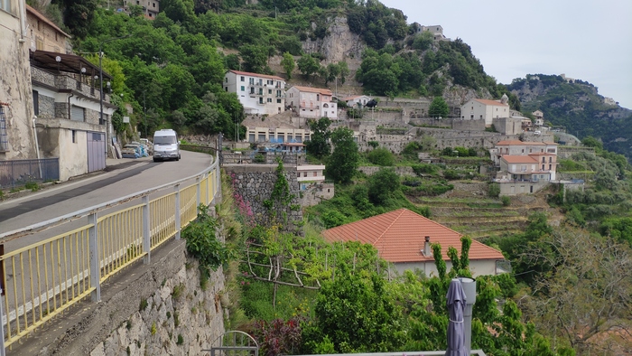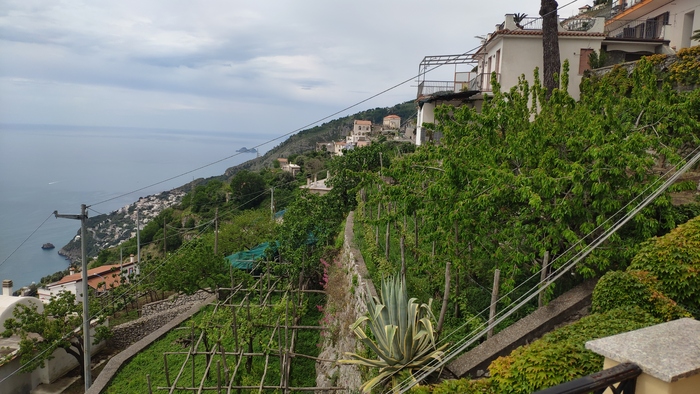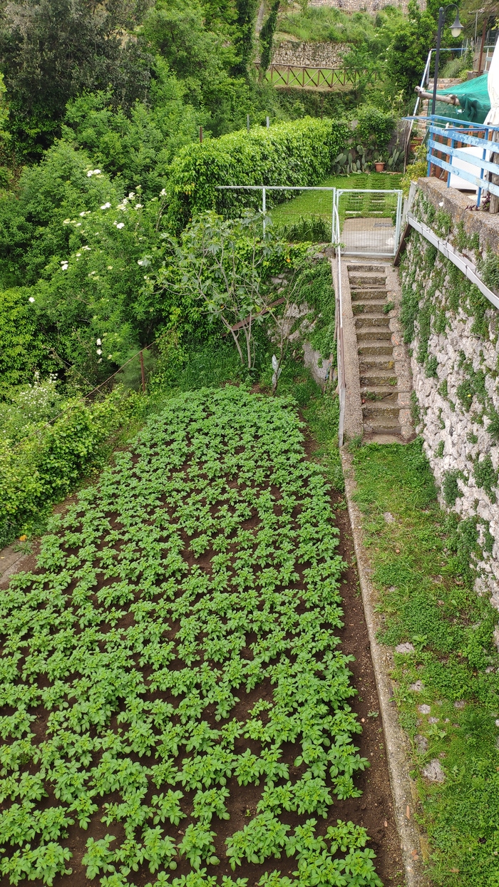 Разместились мы не в самом Неаполе, а чуть дальше на высокой горе недалеко от городов Позитано, Праяно. Недалеко внизу видно море, но по факту это 16км. по серпантинам. Эти места итальянцы используют в основном как мы дачи: поехать на выходные потусить, картошечку покопать, фрукты пособирать.
