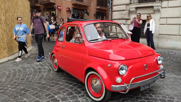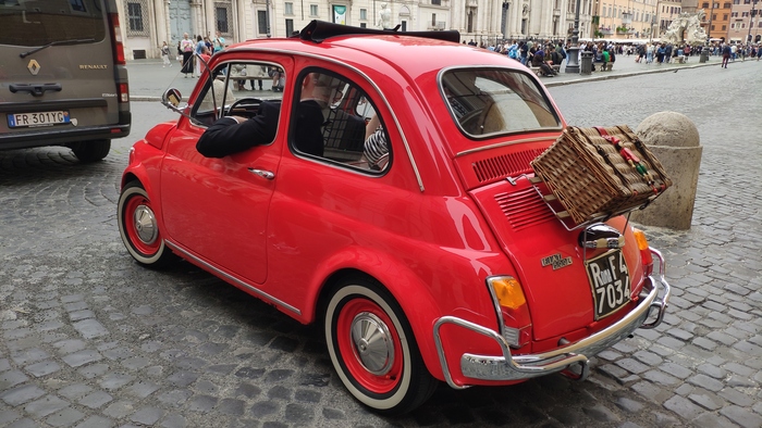 Май 2024. Летели из Молдовы в аэропорт Рима - г. Фумичино. Прямо в аэропорту арендовали две машины на две семьи: Citroen C3 и DS4. Общак тоже недёшев для семьи, особенно если ездить между городами как в нашем турне. Цена за машину около 70 евро в сутки (точно не помню) + залог 300 евро. от Фумичино до Рима около 40км. В сам Рим соваться на машине равносильно самоубийству. Мы оставили машины на самой дешёвой платной парковке на полдня по 20 евро за каждую машину.