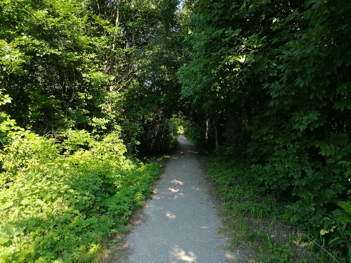 Иду в понедельник на работу. Пешеходная зона, тоннель из зарослей с асфальтовой дорожкой. Красиво!