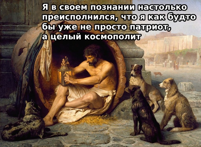 Олег восхищен — ведь космополитизм отлично работает для различения видов патриотизма. Слепой патриот не может быть космополитом. Ведь космополитизм предполагает, что что-то в другой стране может быть лучше, чем в вашей. А отсюда вытекает, что вашу страну можно критиковать в этом конкретном аспекте.