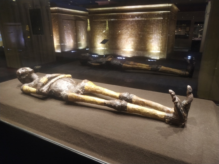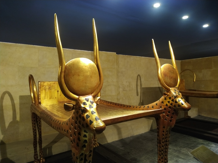 Реплики маски Тутанхамона, его тронов и саркофагов как поддельные ёлочные игрушки. Они вроде и блестят, и скопированы со всеми дефектами оригиналов... Но подвох, думаю, чувствуешь, даже если не знаешь, что все - подделка.