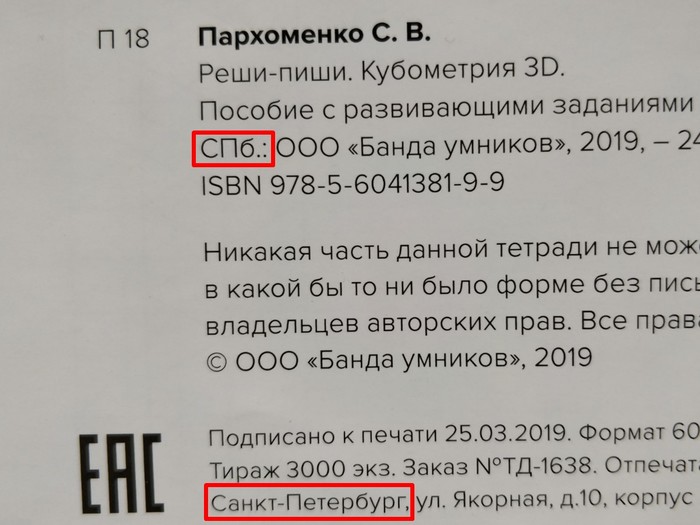 Самое смешное, что тетрадь печатают в Питере, и само издательство находится там же.