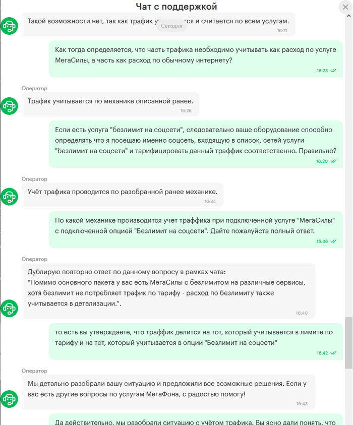Вот такой диалог у меня случился сегодня с техподдержкой МегаФона.