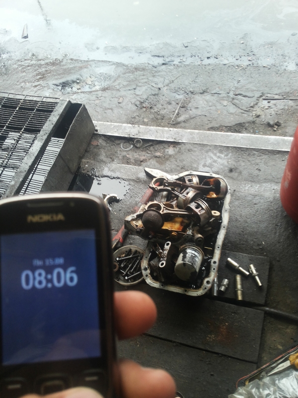 Двигатель запустился с первого раза, никаких стуков, посторонних звуков не было. Сергей дал нам некоторые рекомендации по дальнейшей эксплуатации, мы с ним рассчитались и довольные уехали домой. Последнее фото сделано сегодня, при замене масла по рекомендации Сергея, 2000 км после ремонта.