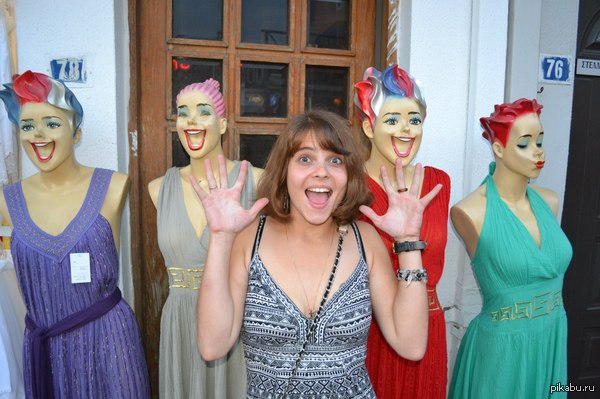 13 cerg26 11 лет назад Веселые девчонки Наткнулись мы с женой на этих весёлых девочек на о. Крите Манекен Девочка