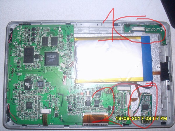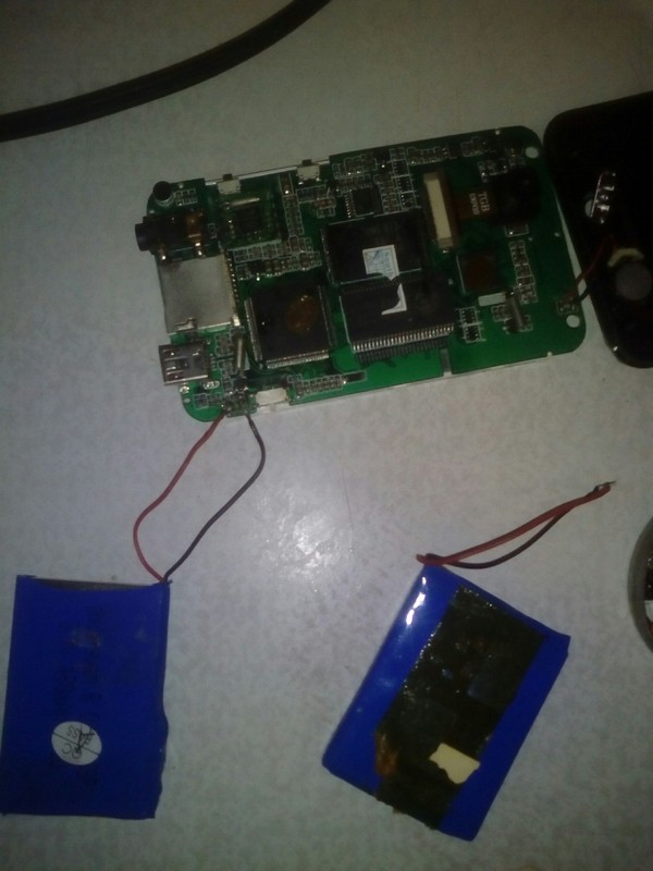 АКБ перепаян, все в канифоли, динамики оторваны. 1 - плата с кнопками, 2 - вай-фай походу, но это не важно.