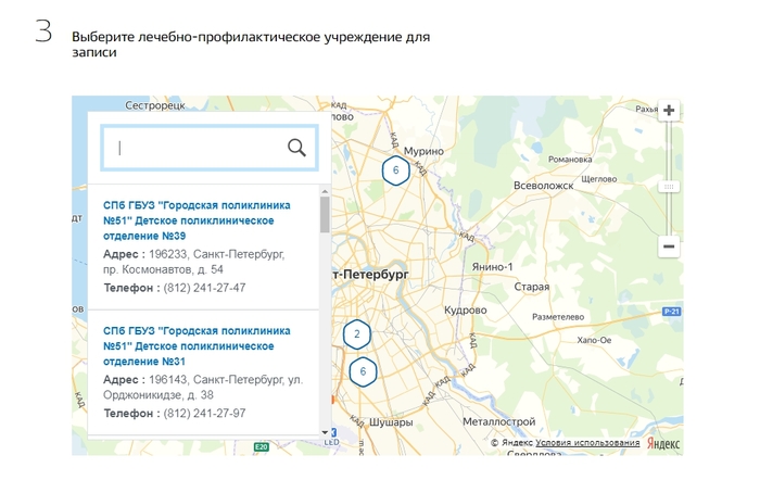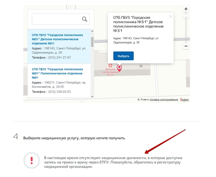 Шаг 4: выбрать поликлинику из списка (лучше первую по списку, потом скажу, почему)