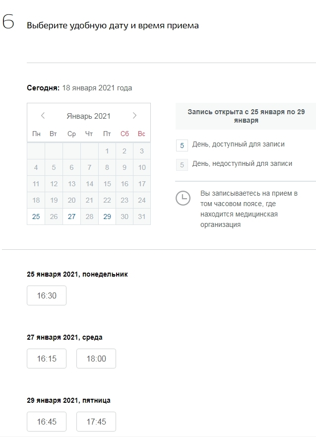 Шаг 7: выбор даты и времени для вакцинации
