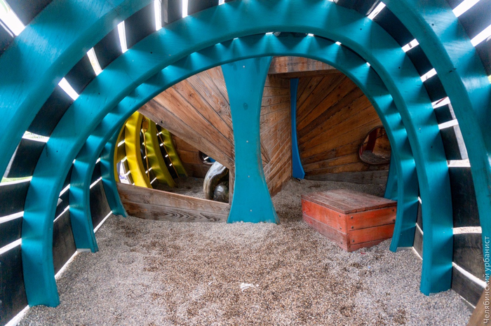 Один объект вмещает в себя все возможные детские удовольствия и сценарии игры. Можно ползать, прыгать, карабкаться, падать в песок, играть в «царя горы», догонялки, команду корабля и ещё тысяча вариантов. Дети сами придумают.