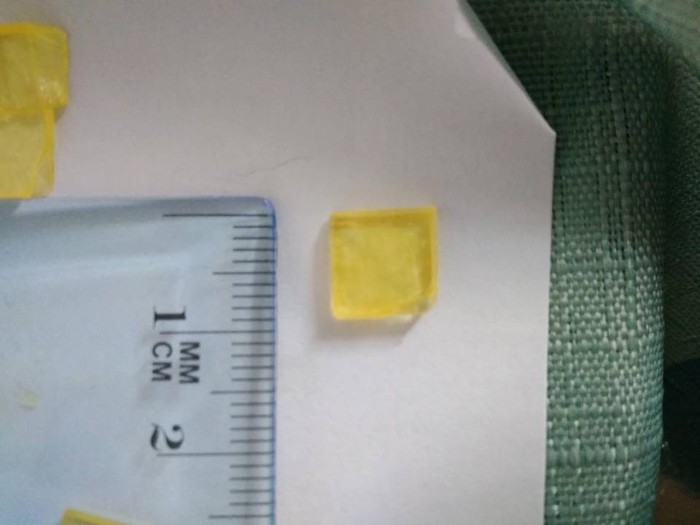 А это самый лучший образец кристаллов что у меня получилось вырастить из жёлтой кровяной соли, был экземпляр и побольше, но он не долго прожил поскольку оброс мелкими квадратиками и стал поликристаллом