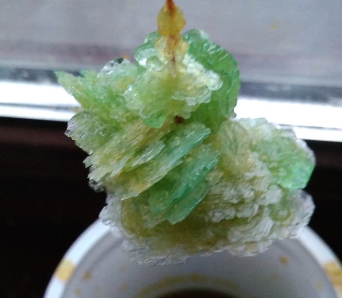 В конце данного длиннопоста хочу добавить чтобы при выращивании вы старались избегать резких перепадов температуры, в противном случае, кристалл будет растворятся и приобретать некрасивую форму. А на этом все, всем хорошего дня.