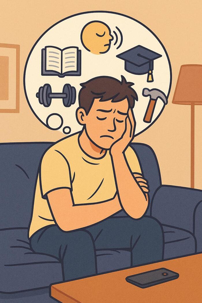 Но при этом, если я займусь чем-то, то удовольствия тоже не получу, я только сильнее устану. Получается такой замкнутый круг, в котором я постоянно должен что-то делать, чтобы ощутить мимолетное удовольствие от достижения, а затем снова окунуться в работу с головой. Ещё ситуацию усугубляет "культ успешности", все рассказывают о своих достижениях, и кажется, что на их фоне ты какой-то лузер.