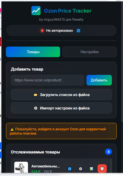 всем привет. чукча не писатель чукча программист. несколько раз видел тут порывающихся написать приложение для отслеживания цен на озон. но у всех авторов это было только на стадии планирования и никогда не доходило до реализации. так же видел ботов в телеграмм, но попробовав ими пользоваться - понял что это жутко неудобно