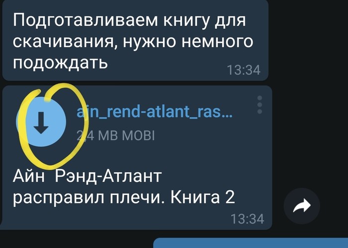 Затем в Telegram находим известный всем бот Флибусты, находим книгу. Обязательно скачиваем ее, то есть жмем га стрелочку