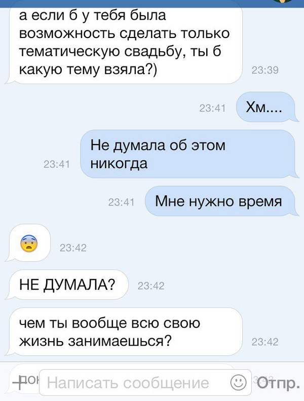 Со мной небыло, но все равно не понимаю, почему эти конспираторши после неудачи просто не говорят "ну ты и мудак"? Как много проблем было бы решено...