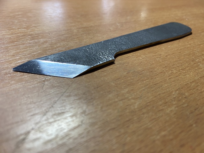 В целом режет, но бритвенной остроты еще не достигнуто. На данный момент это все что я успел сделать. В дальнейшем планирую заняться изготовлением по возможности красивой рукоятки, ножен и доведением режущей кромки до бритвенной остроты.