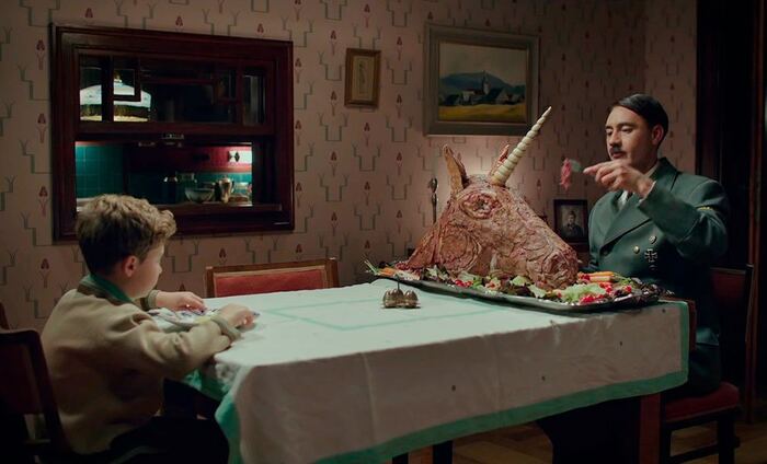 Воображаемого Гитлера, кстати, играет Тайка Вайтити. И персонаж и игра - топ. Он же и снял сам фильм. Это ни разу не типичное военное кино, которое при этом не мрачно рассказывает об ужасах войны и фашизме в частности.