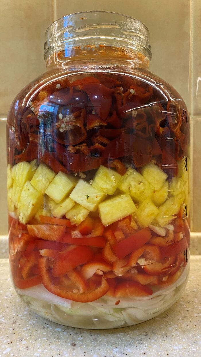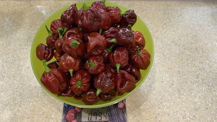 Разрезанный хабанерка обладает довольно сильным цитрусовым ароматом с примесью восточных специй, на вкус сразу чувствуется его острота. Часть собранного урожая была отправлена в банку с ананасом на ферментацию. Поскольку казалось, что перец не шибко острый, то нарезался он без резиновых перчаток, что было неуважительно по отношению к нему. О своих огненных качествах он напомнил довольно быстро и ощущение на руках легкого ожога чувствовалось до следующего дня. Не пренебрегайте мерами предосторожности при работе с острыми перцами!