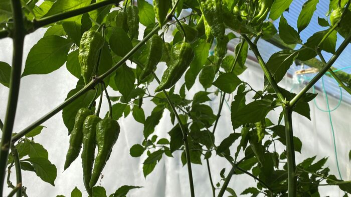 Пеперончино – рост нормальный, в пределах метра. Как уже писал, урожай небольшой.