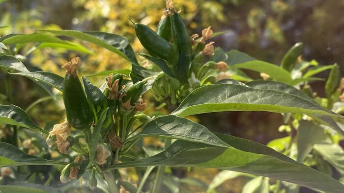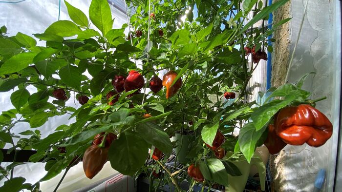 Когда стало совсем прохладно, созревшие несколько перчиков второго (!) урожая были срезаны и отправлены на сушку, а сами растения были отправлены на «зимние квартиры» за город.