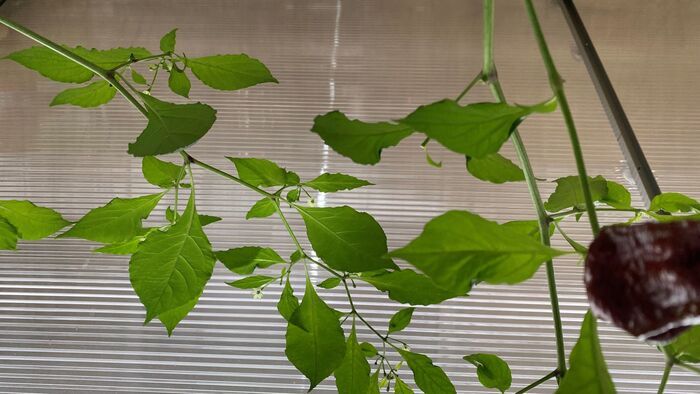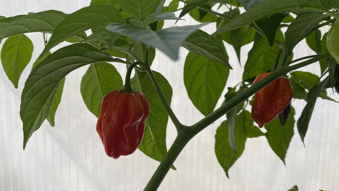 Тринидад дугла шоколадный. Чудным образом летом завязались два перца (Два, Карл!).