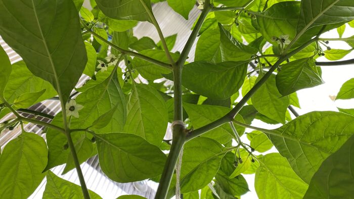 Хабанеро красный – рост высокий, за полтора метра. Толщина ствола у некоторых достигает 2 сантиметров. Плодов, на мой взгляд, достаточно, хоть и лето было холодным.