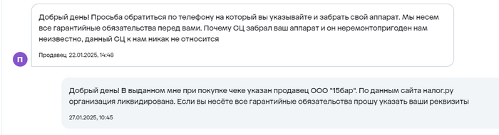 Поковыряв личный кабинет Мегамаркета выяснил, что до конца гарантии еще чуть менее чем полгода, а значит можно рассчитывать на гарантийный ремонт. Схватив парогенератор в руки, потащился в авторизированный сервисный центр, где его благополучно приняли. И спустя 2 недели черканули в личном кабинете, что ремонту данный аппарат не подлежит, приезжайте за Актом о неремонтопригодности товара, а парогенератор останется у нас для утилизации. Вот тут я уже напрягся, понимая что проблемы вот они - начинаются :)