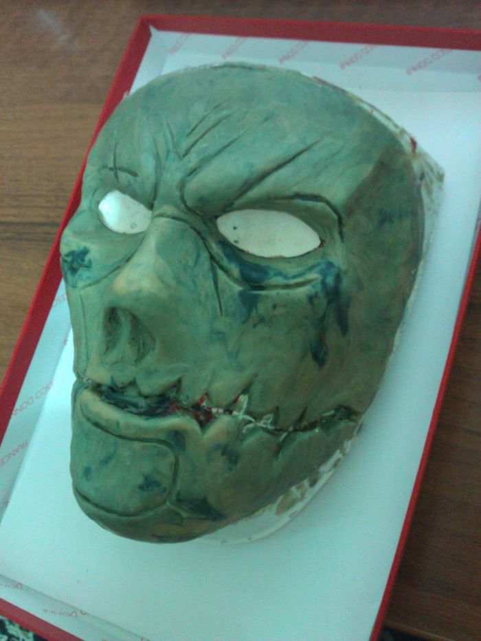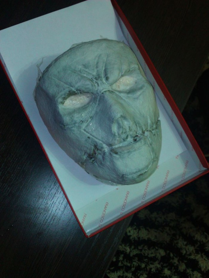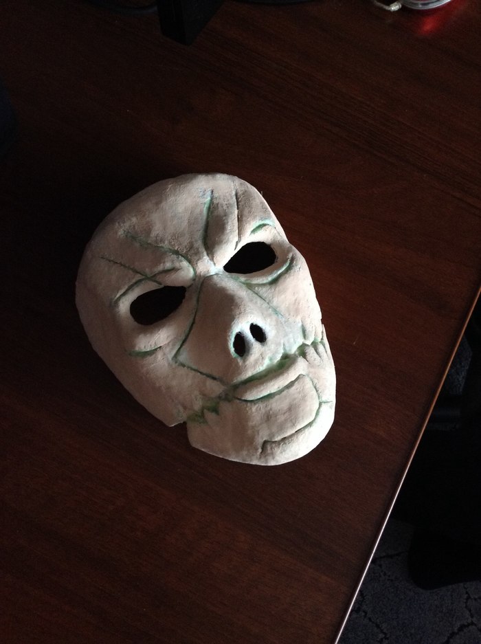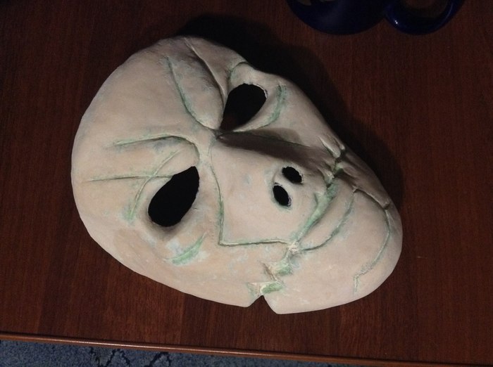Когда слои хорошо просохли обрезаем маску по краям и аккуратно снимаем с формы. Чтобы маска не прилипла к форме, я оборачиваю форму в пищевую плёнку. На этом этапе можно уже раскрасить её, но нам нужна более интересная текстура, поэтому идём дальше.