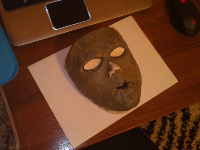 Для начала нам нужна пластилиновая форма, я леплю её вот на таком манекене. Изготовлен он из театральной маски и гипса.