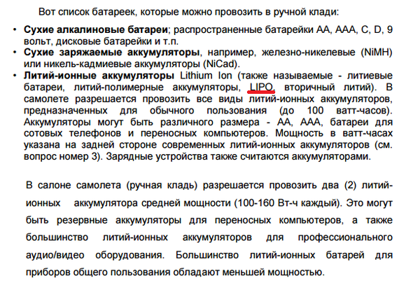 Выписка из правил: (Это LiPo аккумулятор, ёмкость меньше 100 Вт*Ч)