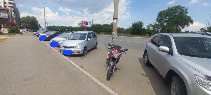 Теперь вы влезете на это место. Но мотоцикл стоит уже с нарушением ПДД, т.к. предположим что там есть знак предписывающий расположение ТС именно так. А как быть мотоциклисту, решившему уехать оттуда? Остаётся перекатить его через газон на тротуар и далее выкатить на проезжую часть.