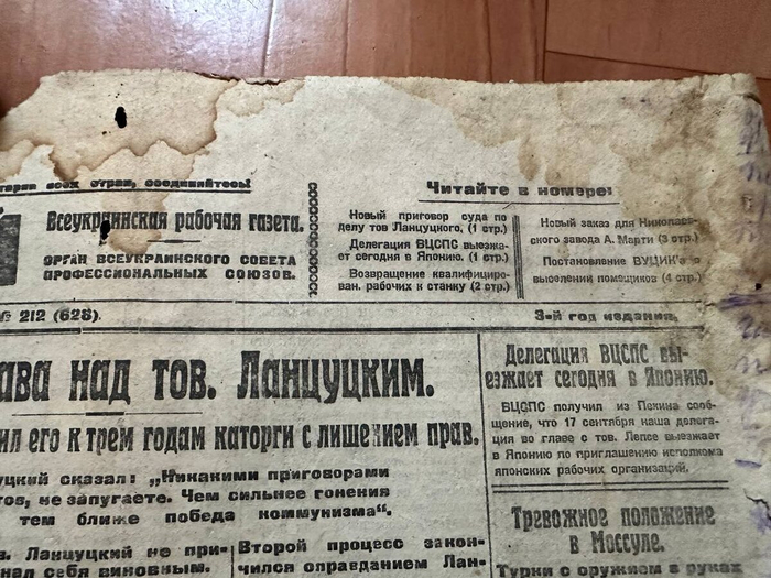 Всем привет. Тема не сильно популярная, но определенно - интересная некоторым читателям моего блога. Итак, напоминаю: мною, не так давно, с кучей интересных старых вещей, были найдены несколько газет, почти 100 летней давности, в читабельном состоянии. Прочитать про это можно - здесь.